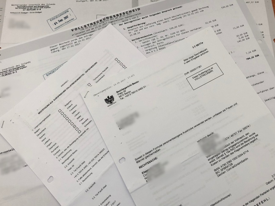 Sofern die Zahlung des Schuldners trotz unserer vorgerichtlichen Inkasso-Maßnahmen ausbleiben sollte, so leiten wir umgehend das gerichtliche Mahnverfahren (Mahnbescheid, Vollstreckungsbescheid) über das länderspezifische zentrale Mahngericht ein. In zahlreichen Fällen motiviert die Zustellung des Mahn- bzw. Vollstreckungsbescheides den Schuldner zur Begleichung der Forderung.